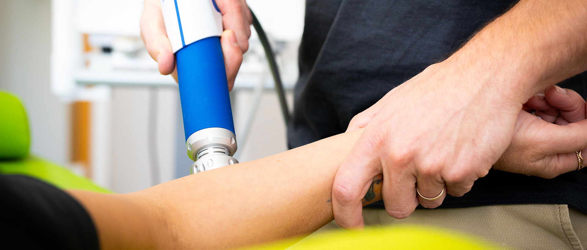 Die Radiale Stoßwellentherapie ist ein moderner Behandlungsansatz für unterschiedliche Beschwerdebilder. Mittels akustischer Wellen werden Stoffwechselprozesse ausgelöst, die Entzündungen entgegenwirken und zur Freisetzung von Wachstumsfaktoren führen – und damit eine echte und nachhaltige Heilung über körpereigene Prozesse ermöglichen.